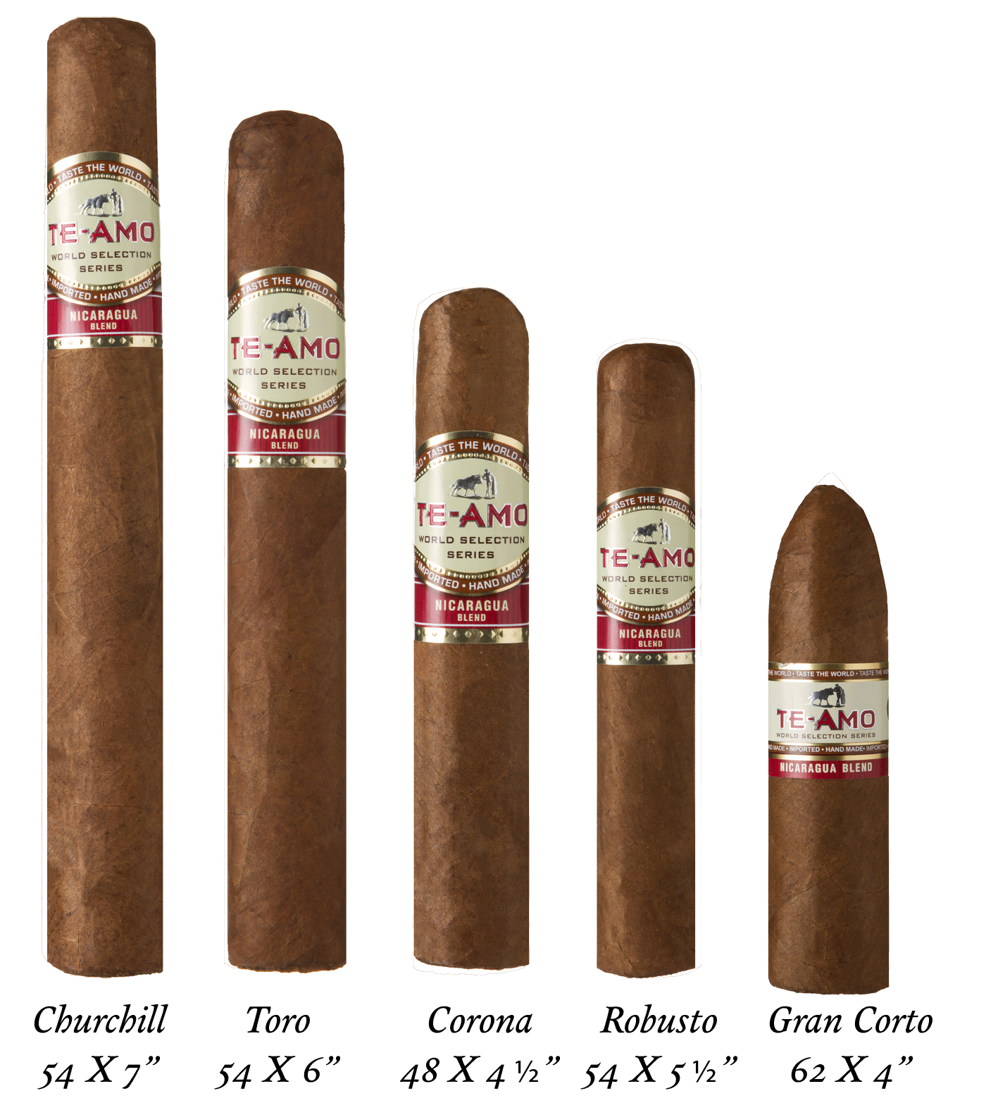 Medium to full-bodied with uncompromising character, the Te-Amo World Selection Honduras Blend unites Honduran tradition with Mexican mastery. A rare Corojo wrapper embraces select Honduran fillers, opening with bold cedar and spice that unveil luxurious depths of chocolate, cocoa, and coffee accented by pepper. Crafted for the experienced palate seeking refined power and captivating complexity.